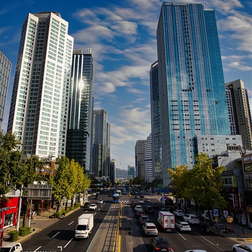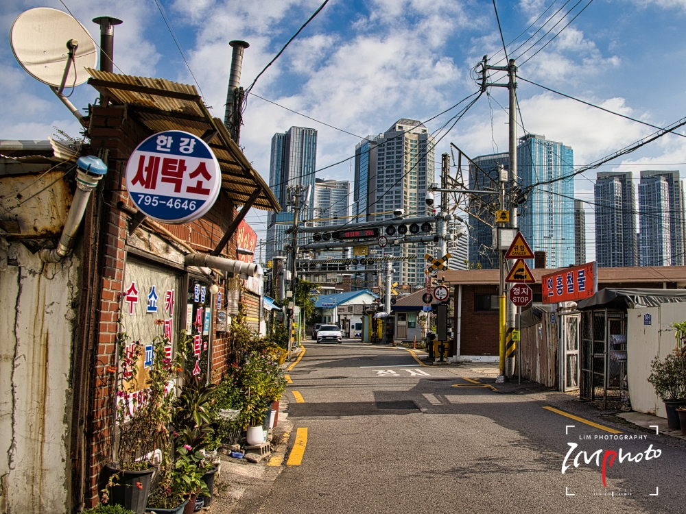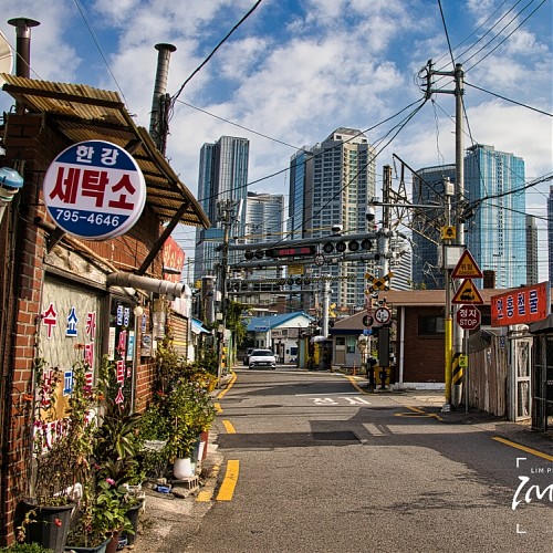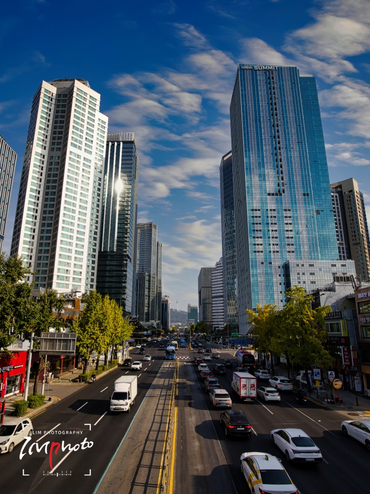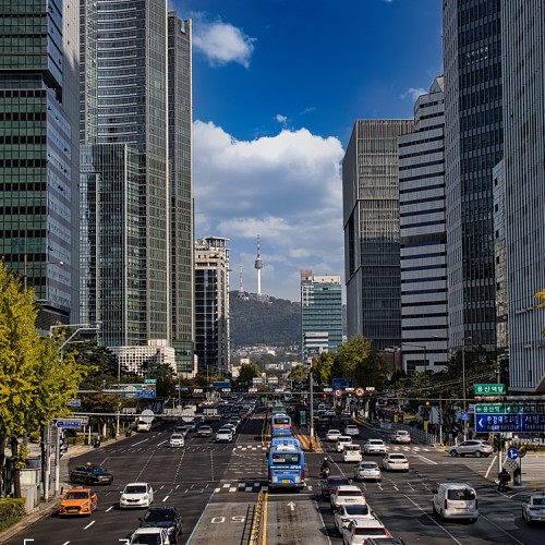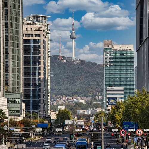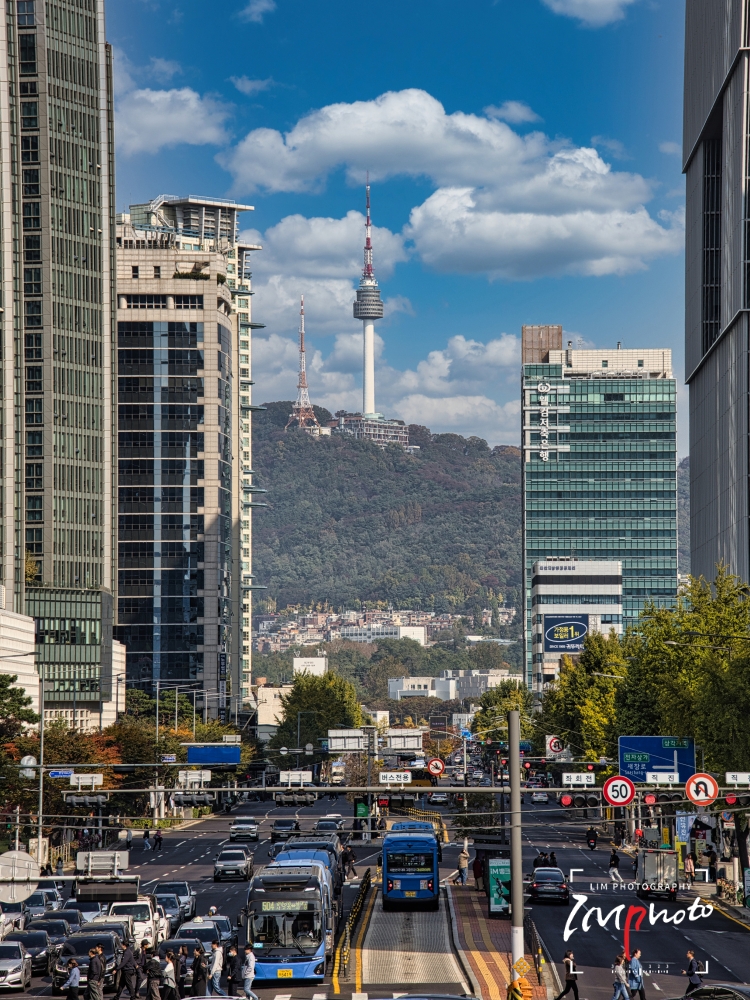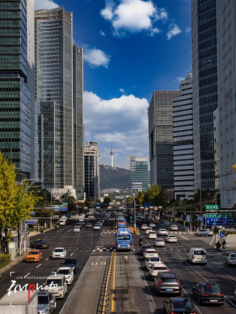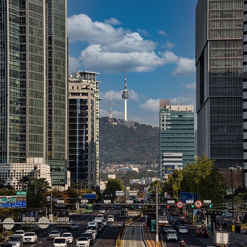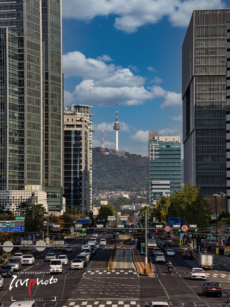 Namsan Tower seen through the buildings from the Hangang Elementary School overpass